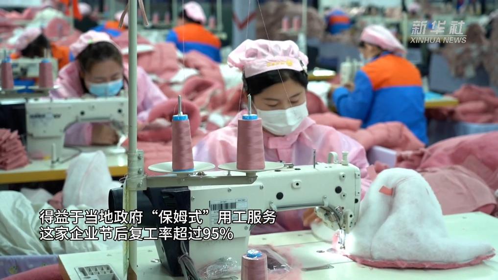 春节刚过,在山东省菏泽市巨野县鸿天服饰有限公司,500多名工人正在赶制发往江浙沪市场的订单。得益于当地政府“保姆式”用工服务,这家企业节后复工率超过95%。